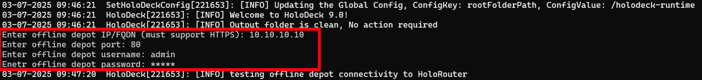 The procedure is similar to online depot except instead of passing the build token, customer needs to provide the details of the offline depot interactively: