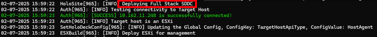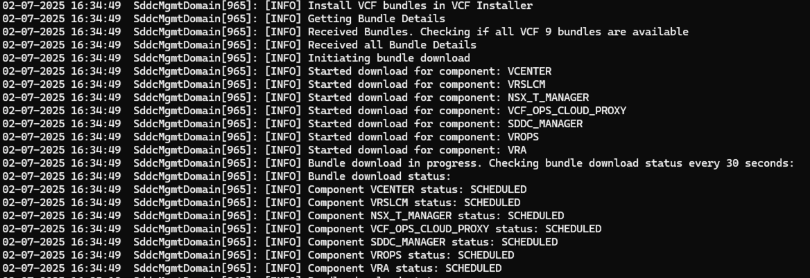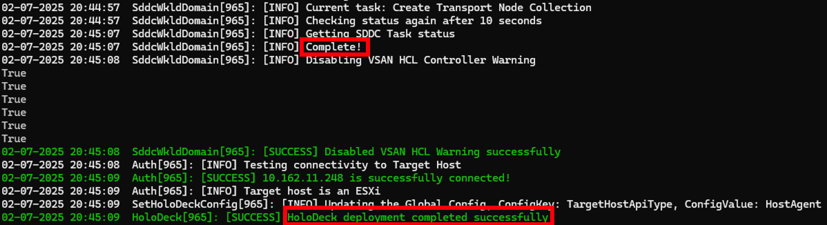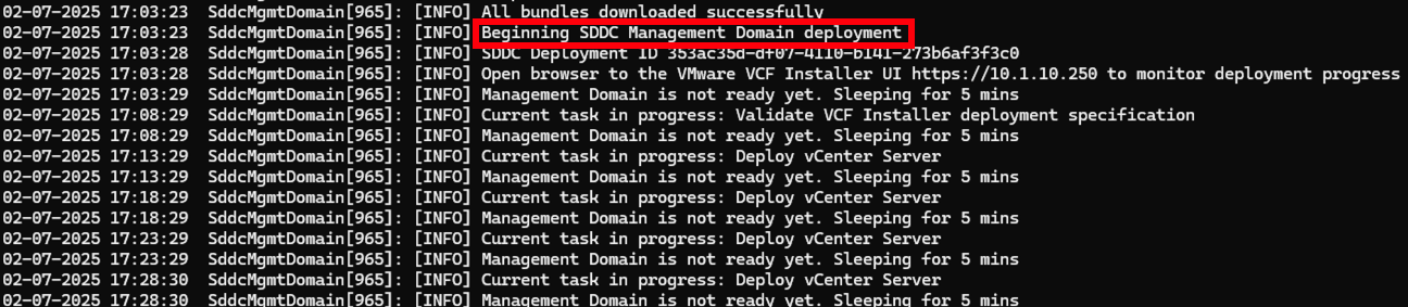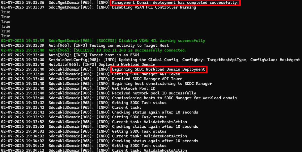 Management Domain deployment completed and Workload Domain deployment initiated: