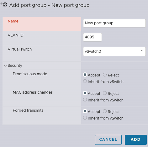 need to have physical VLANs plumbed to the ESX host to support nested labs. There is also an option to use an NSX overlay segment instead of a vSS/vDS