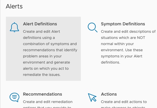 content/recommendationsorcontent/symptomsdirectory. - Duplicate the symptom or recommendation before exporting, so that each alert definition has its own unique dependency that can be modified separately.